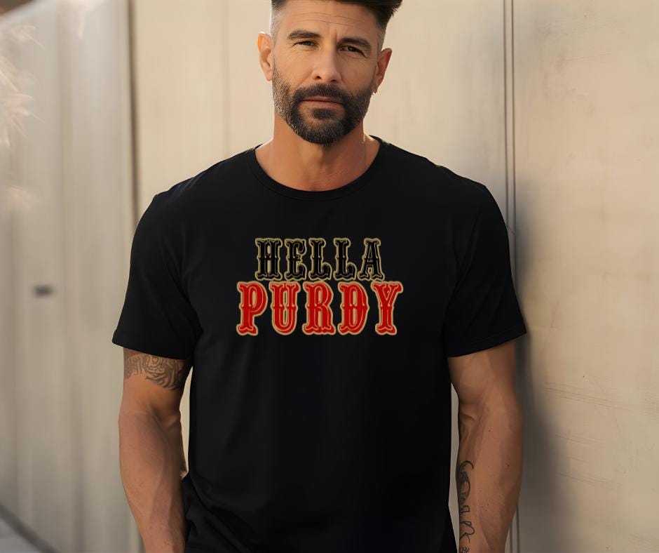Celebrate your love for the San Francisco 49ers and their standout quarterback with this stylish "Hella Purdy" t-shirt! Whether you’re cheering from the stands or repping your team at a watch party, this tee says it all with a fun, bold design in classic Niners colors.