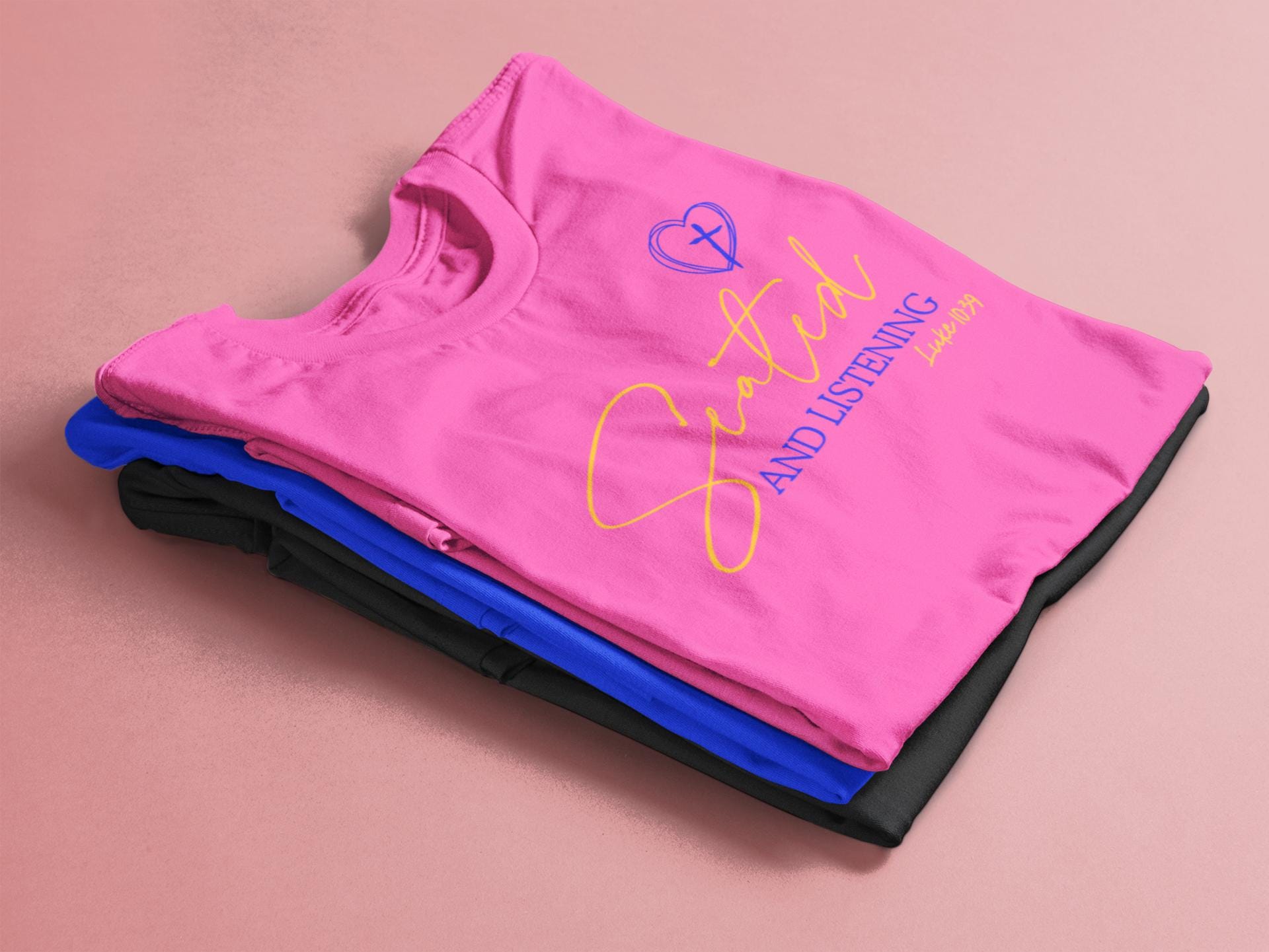 Stay rooted in faith with our Seated and Listening t-shirt, inspired by Luke 10:39. This beautifully designed tee features an elegant script font, a heart with a cross emblem, and a powerful reminder to embrace moments of stillness and spiritual reflection. Crafted from soft, high-quality fabric in a vibrant royal blue, this shirt is perfect for church gatherings, Bible study, or everyday wear. Let your faith shine while making a statement of devotion and mindfulness.